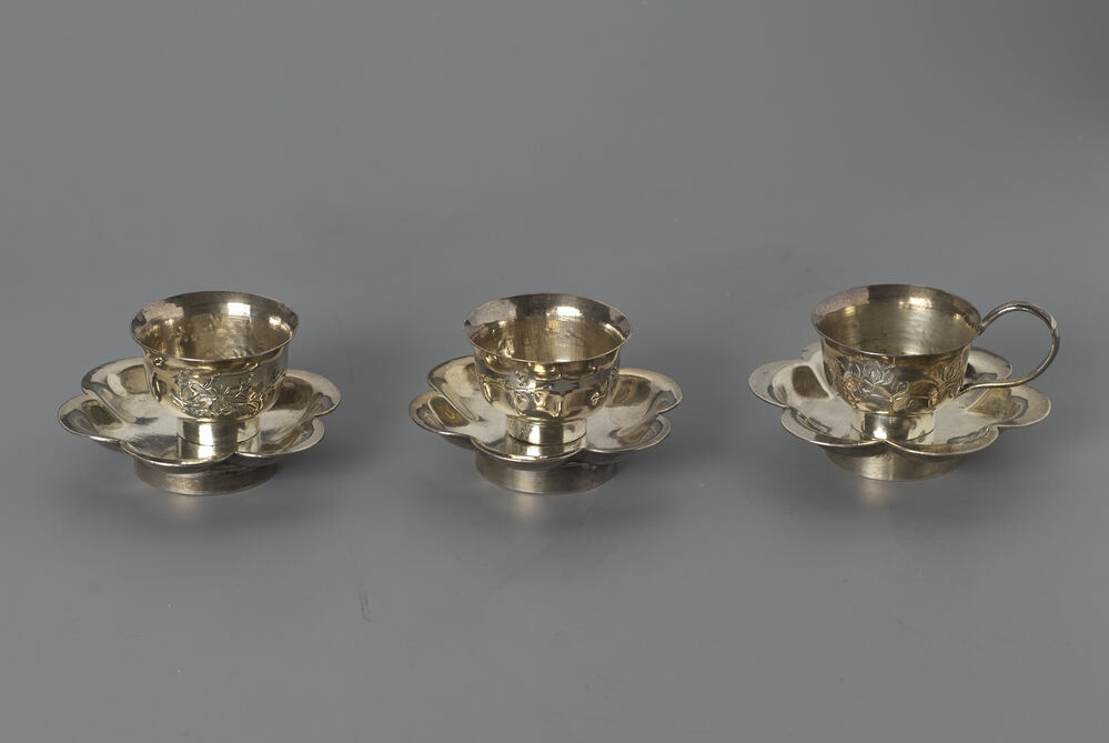 Servies bestaande uit drie kopjes en schotels- Trefwoorden