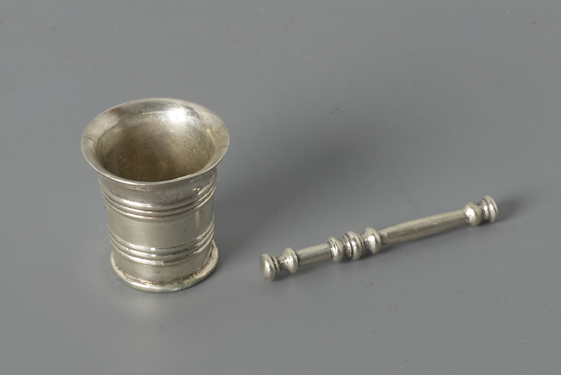 Ronde vijzel versierd met twee banden.- Trefwoorden