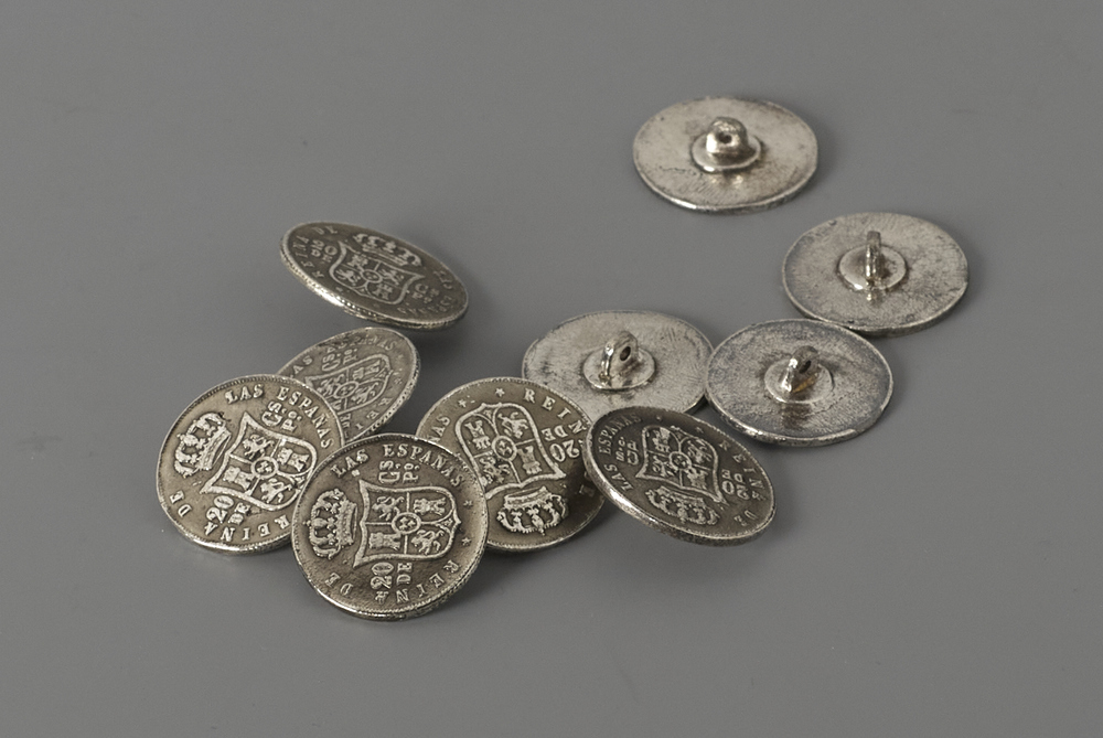 Livreiknopen van Spaanse munten met opschrift Regina de Las Espanas- Trefwoorden