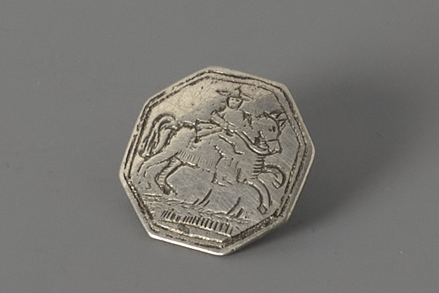 Achtkantige knoop met een gegravering van een ruiter op een paard- Trefwoorden