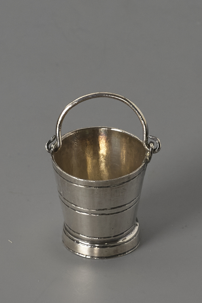 Emmer met hengsel. In de emmer zijn vijf lijnen gegraveerd.- Trefwoorden