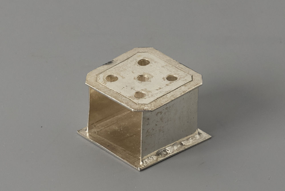 Vierkante stoof met vijf gaatjes aan de bovenzijde.- Trefwoorden