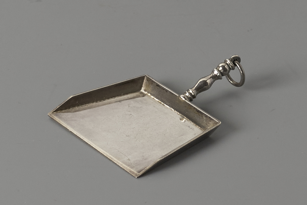 meesterteken onderzijde "schep": Arnoldus van Geffen, werkzaam van 1728 tot 1769; Bron: Citroen 1975, nr. 1199; Voet 1912, nr.251; Duysters 1999, nr. 24 : hartvormig schild met hoorn