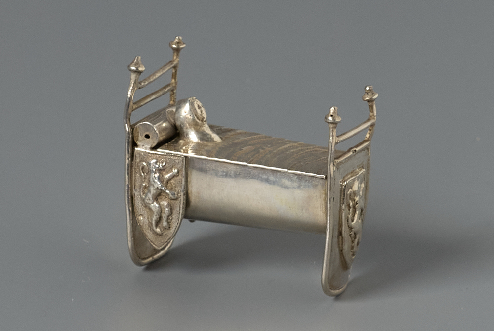 Wieg versierd met verschillende wapenschilden.- Trefwoorden