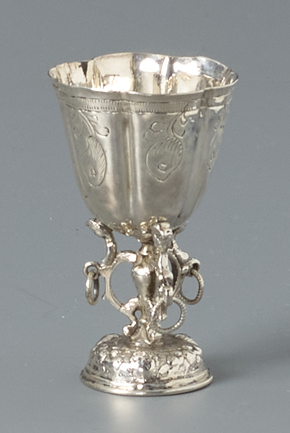 Beker op ronde voet versierd met renaissance-motieven.- Trefwoorden