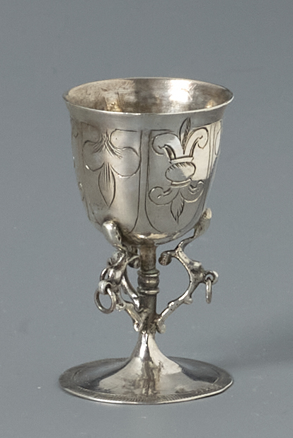 Kelk op ronde voet versierd met renaissance-motieven.