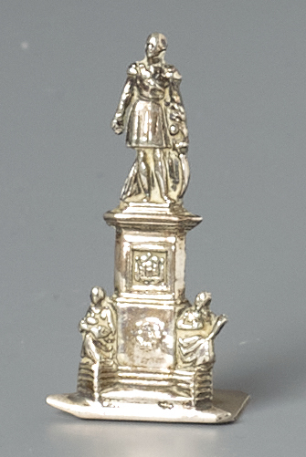 Hoge sokkel met twee figuren op de basis en Willem met sabel er staand bovenop, oppgericht 1854.- Trefwoorden