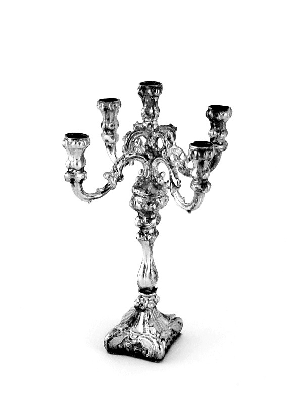 Kandelaber met vier armen voor vijf kaarsen op vierkante geschulpte voet.