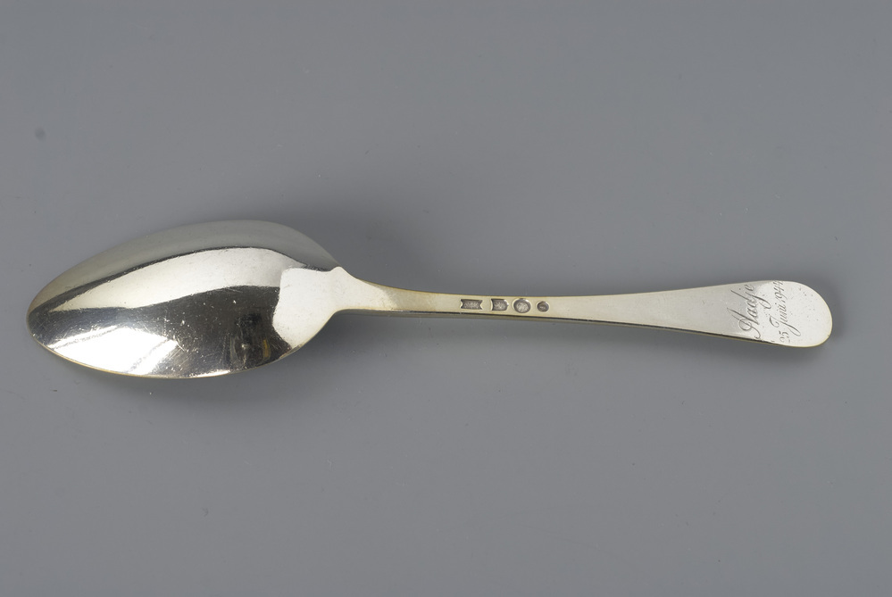 - Lepel van driedelig zilveren kinderbestek van Adrianus Bonebakker (1943-2002), gedoopt op 25 juni 1944., 1944