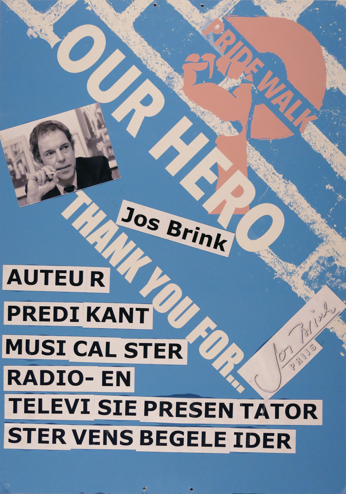 - Pride Walk-bord, Jos Brink, Auteur, Predikant, Musical ster, Radio- en televisiepresentator, Stervensbegeleider, 2019