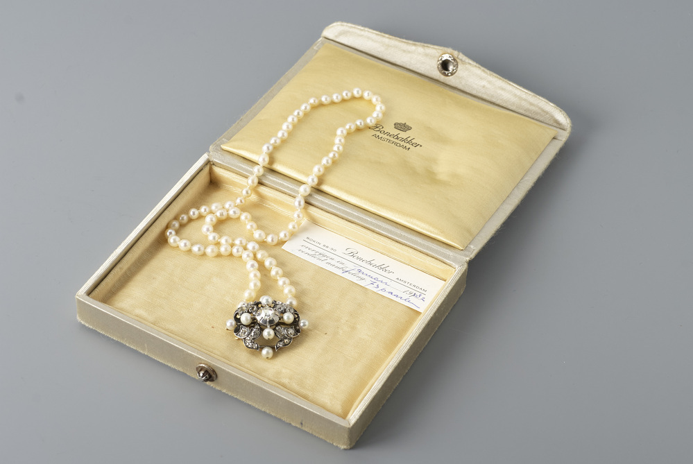 Bonebakker-etui, bekleed met beigekleurige zijde.- Trefwoorden