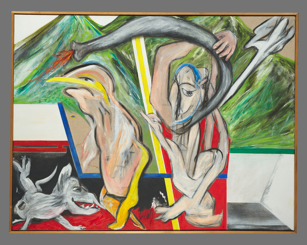 - Onderdeel van de hal- en trappenhuisschilderijen die Jacqueline de Jong voor het nieuwe stadhuis maakte. ( Judith van Gent)