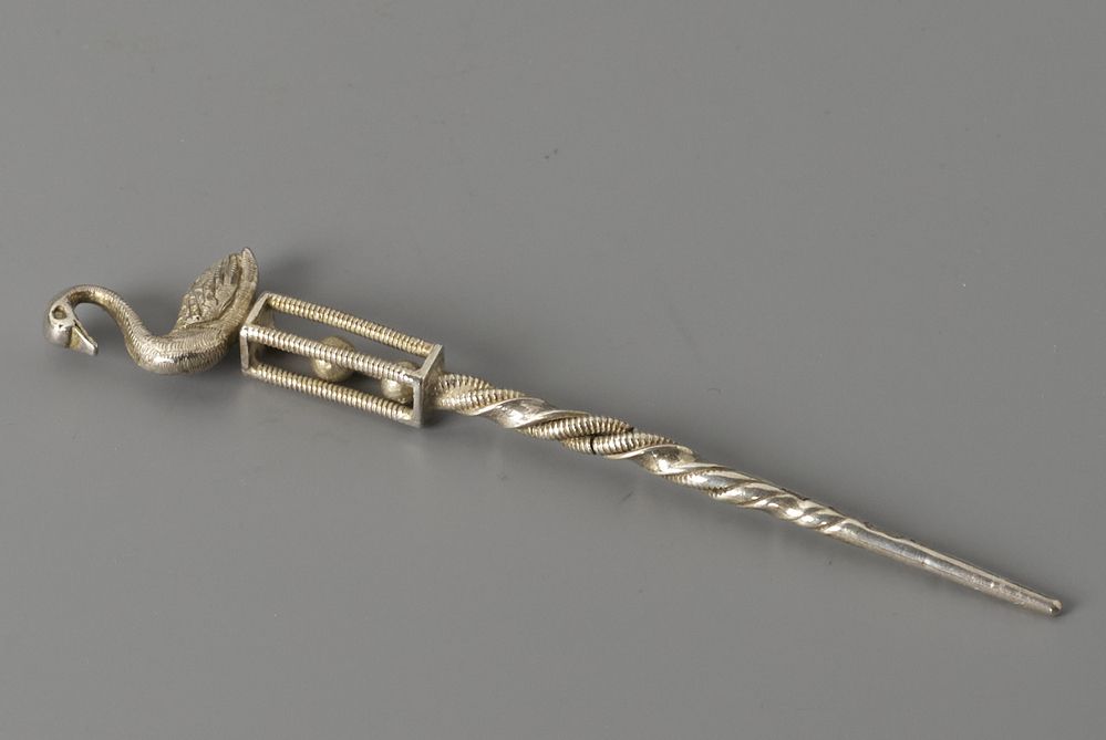 Pijpewroeter met gedraaide steel en bekroond door een zwaan.