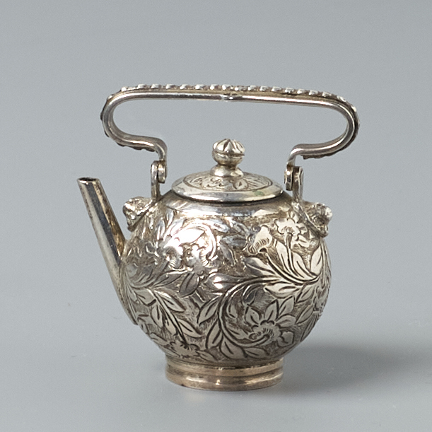 schenking 2021 inv.nr. 6051 in depot Ronde waterketel versierd met florale motieven en rechte tuit.