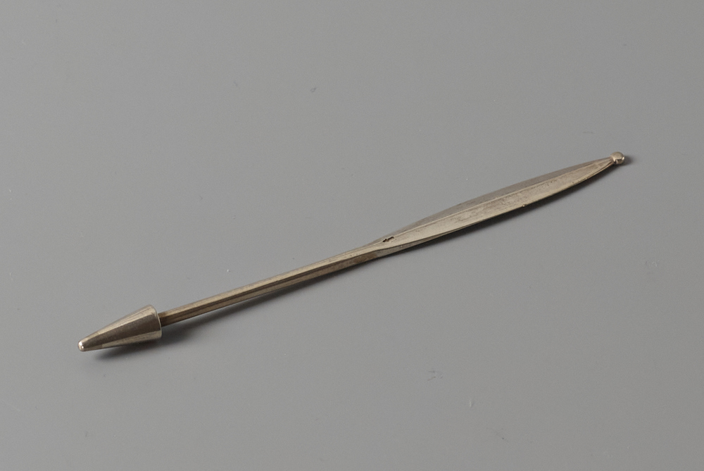 - gehalteteken midden steel: Zwaardje met geribbeld handvat : Kleine zilveren werken, beide gehalten, 1906-1953