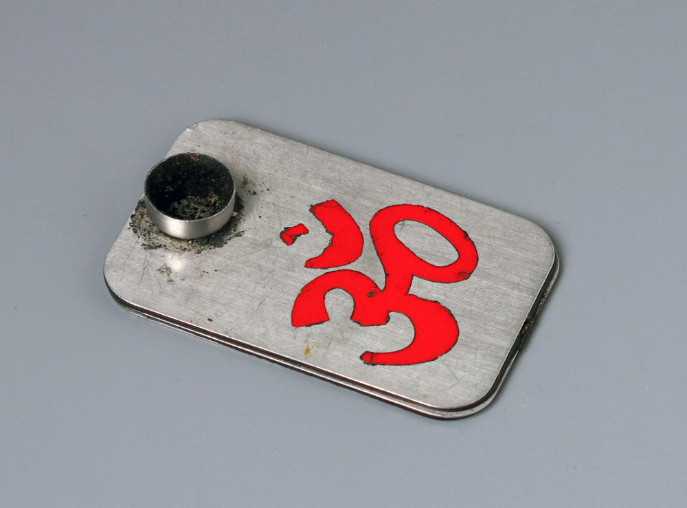 Hans Plomp schonk dit pijpje aan het Amsterdam Museum. Hij is een van de eerste bewoners van kunstenaarskolonie Ruigoord. Samen met mede Ruigoord-kunstenaar Gerben Hellinga heeft hij zich verdiept in geestverruimende middelen. Zij schreven hierover 'Uit je bol, gids voor bewust gebruik van 'drugs''. Voor Plomp en andere Ruigoordbewoners zijn geestverruimende middelen ook een manier om contact te maken met andere culturen. Het Om-teken op het hasjpijpje verwijst naar uit het Sanskriet afkomstige symbool, dat staat voor het hoogste, de oneindigheid en het goddelijke in de mens. Het komt zowel voor in hindoeïsme als boeddhisme. ( Annemarie de Wildt)