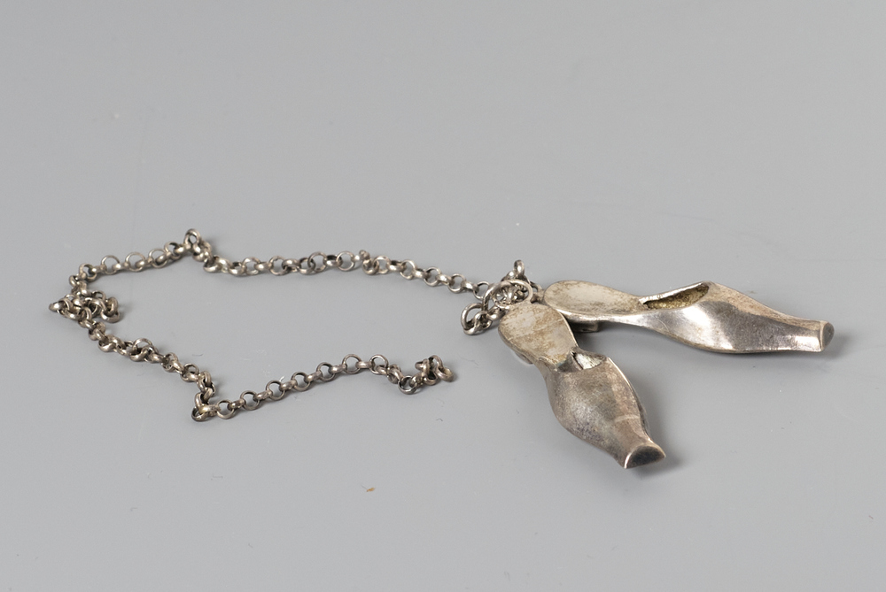 Breipendoppen in de vorm van een Middeleeuws schoentje de z.g.n. Trip, met oog en ketting- Trefwoorden