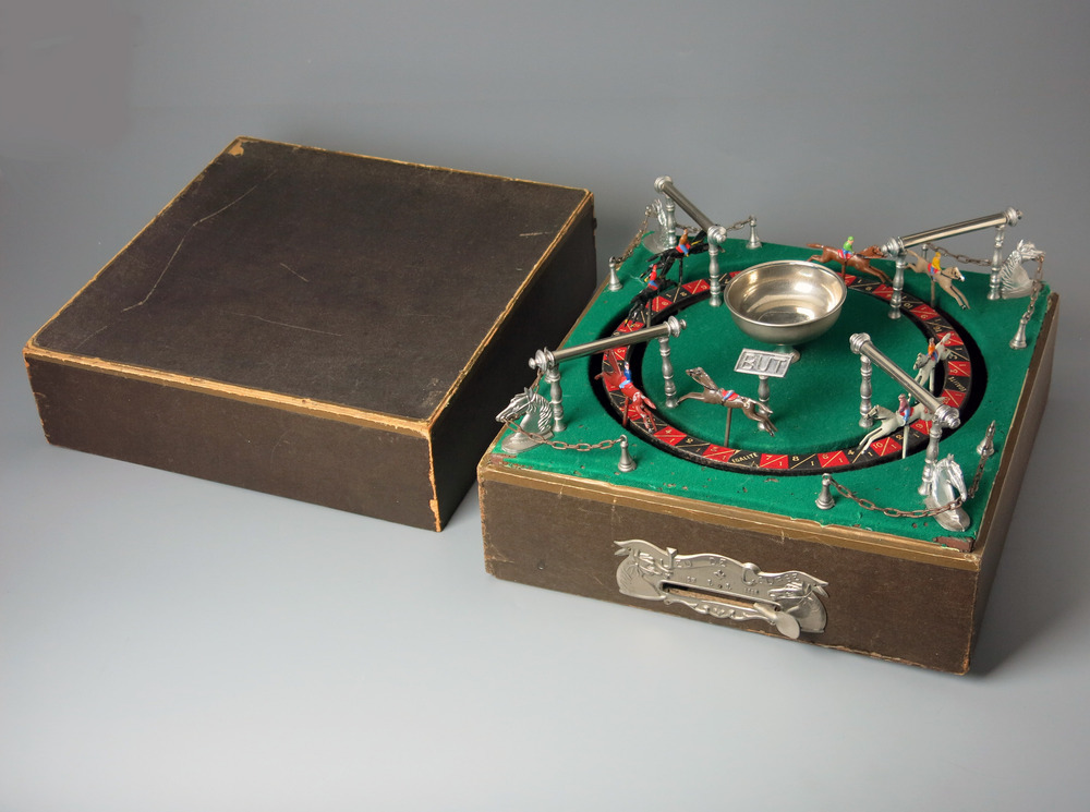 Kast met rondbewegende paarden in roulette.- Trefwoorden