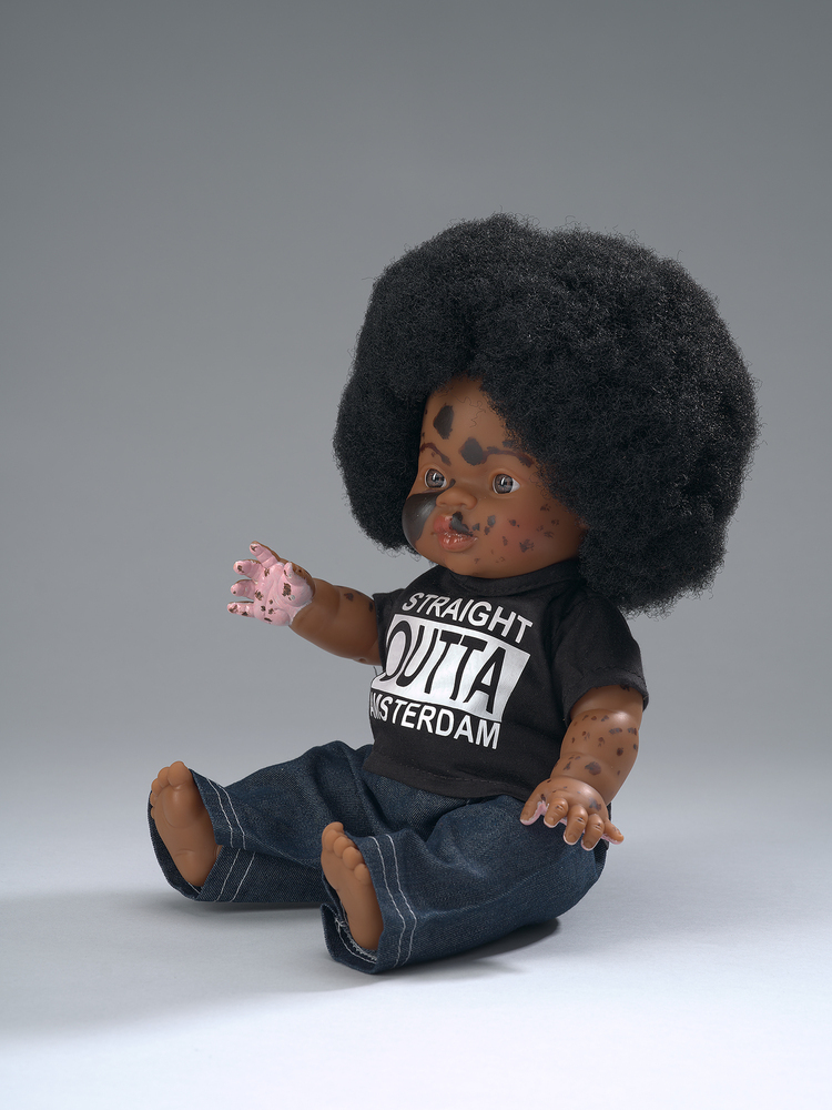 - Nevus - CJ met shirt Straight Out of Amsterdam (Black & Unique doll uit poppenwinkel Colourful Goodies), 2023