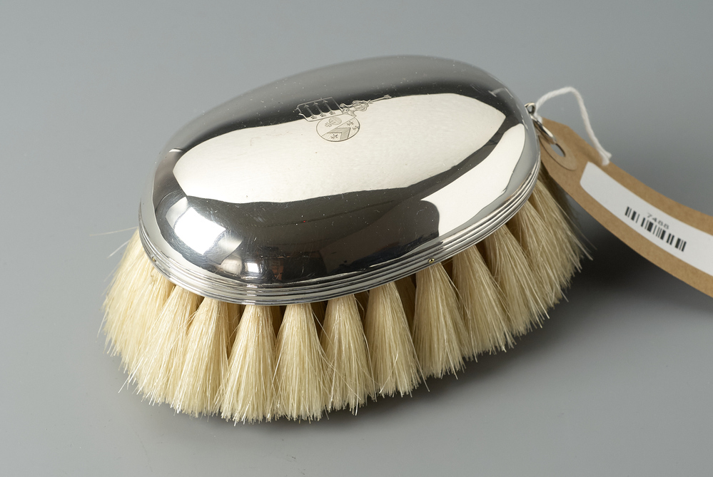 Zilveren kledingborstel met familiewapens Bonebakker & Verschoor van Nisse.- Trefwoorden