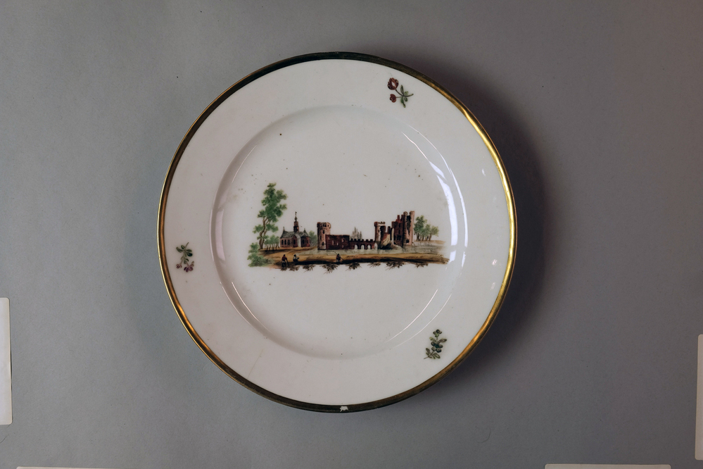 Bord met een afbeelding van een historisch dorpsgezicht of gebouw.- Trefwoorden