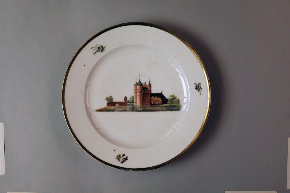 Bord met een afbeelding van een historisch dorpsgezicht of gebouw.- Trefwoorden