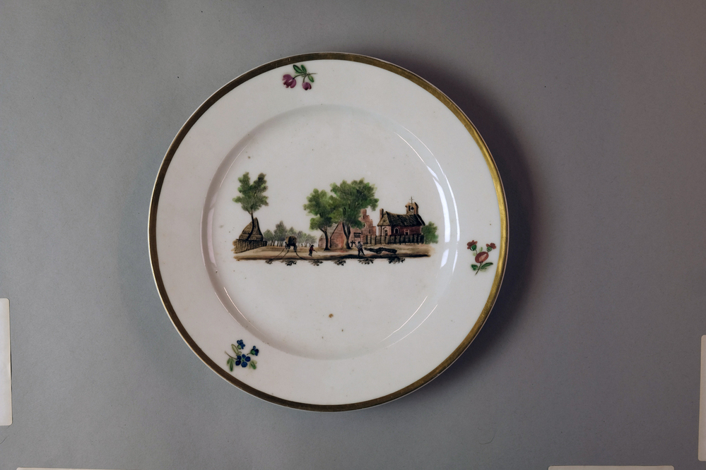 Bord met een afbeelding van een historisch dorpsgezicht of gebouw.- Trefwoorden