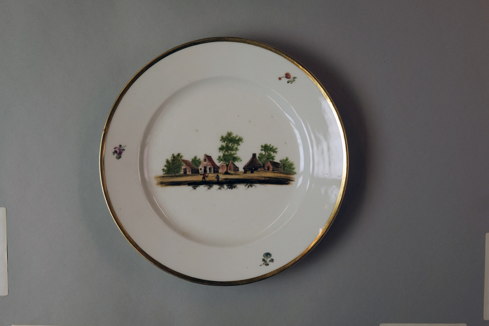 Bord met een afbeelding van een historisch dorpsgezicht of gebouw.- Trefwoorden
