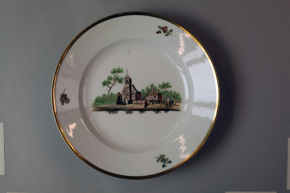 Bord met een afbeelding van een historisch dorpsgezicht of gebouw.- Trefwoorden
