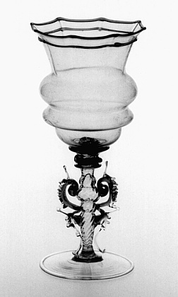 Stam en kelk van het glas dateren uit de zeventiende eeuw, maar horen oorspronkelijk niet bij elkaar. In de negentiende eeuw is uit deze twee onderdelen een 'nieuw' zeventiende-eeuws glas samengesteld, iets dat wel vaker voorkwam. Dergelijke glazen worden wel 'mariages' genoemd. ( Annemarie den Dekker)