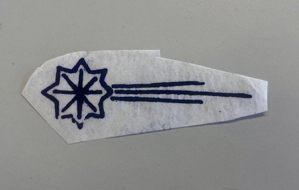 Sjabloonvel t.b.v. het stencilen van een tattoo-ontwerp op de huid. Bij het event in Willet op 18 december 2025 gebruikte Henk Schiffmacher voor het eerst zijn ontwerp dat hij had gemaakt op basis van de tatoeage op het schilderij 'De oppercommissarissen der Walen' in de stadscollectie (SA 7283).