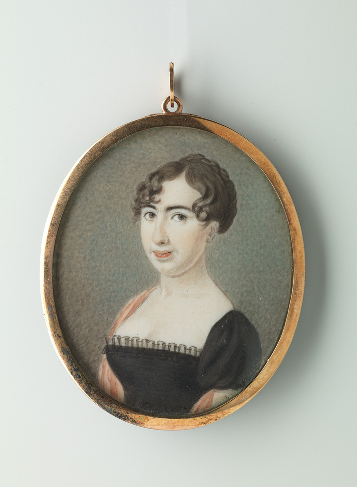 De ene kant van het medaillon bevat een portret van Sandrina Louisa Holthuysen-Lepeltak (1793-1856), moeder van de schenkster. Op de andere kant is van haar haar een compositie aangebracht van korenaren en een vergeet-mij-nietje, alsmede het monogram van de geportretteerde. Mogelijk is het medaillon vervaardigd als een souvenir triste, na het overlijden van mevrouw Holthuysen-Lepeltak in 1856. ( Bert Vreeken)
