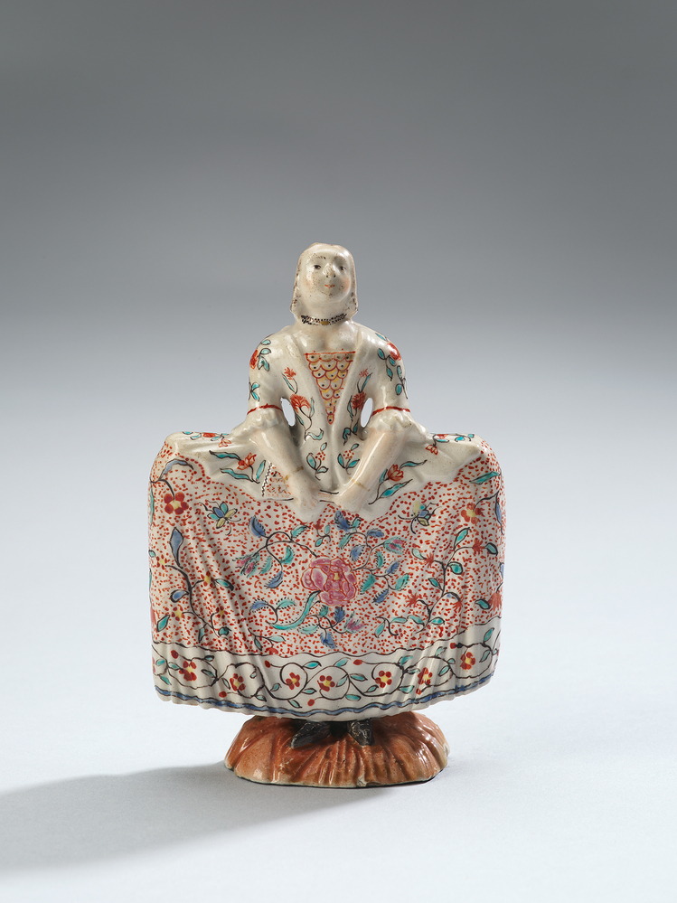 Figuur beschilderd met emaille-kleuren van een vrouw die een Robe a la Francaise draagt- Trefwoorden