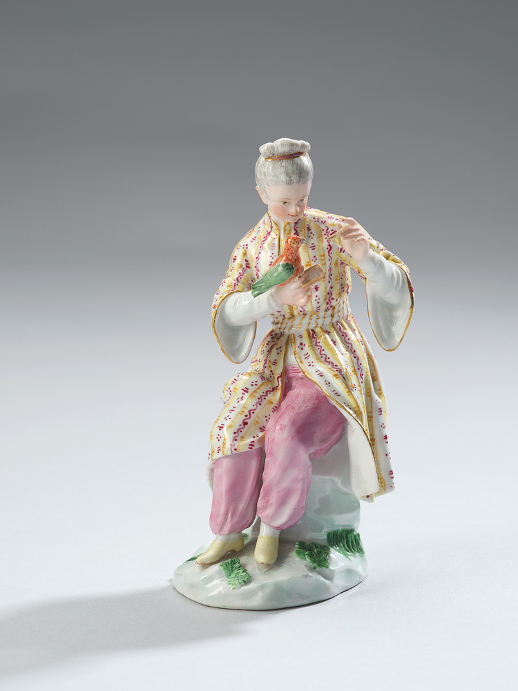 Een vrouwenfiguur zittend op een rots en een vogel voerend- Trefwoorden