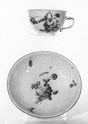 - Theekopje en schotel van 36-delig koffie-, thee- en chocolade servies, 1750 - 1770