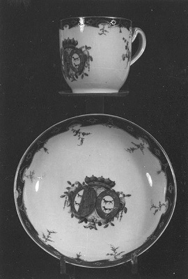 Dit kopje was van Francisco Lopes Suasso en zijn achternicht Sara Lopes de Liz, die trouwden in 1729. Dit is te zien aan het alliantiewapen van hun beide families dat te zien is op het kopje en schoteltje. ( Judith Kraamwinkel)