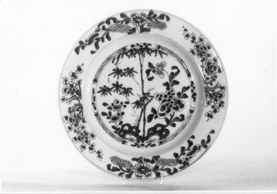 bamboe op rots met 2 bloemboeketten en 2 bloemtakken op de rand- Trefwoorden