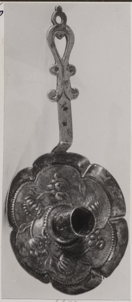 Zeslobbige blaker met gedreven bloemen en met lange opengewerkte steel.