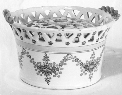 Twee bloempotten, geglazuurd aardewerk met polychrome decoratie.- Trefwoorden