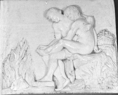 - Reliëf met zittend naakt paar, 1865 - 1890