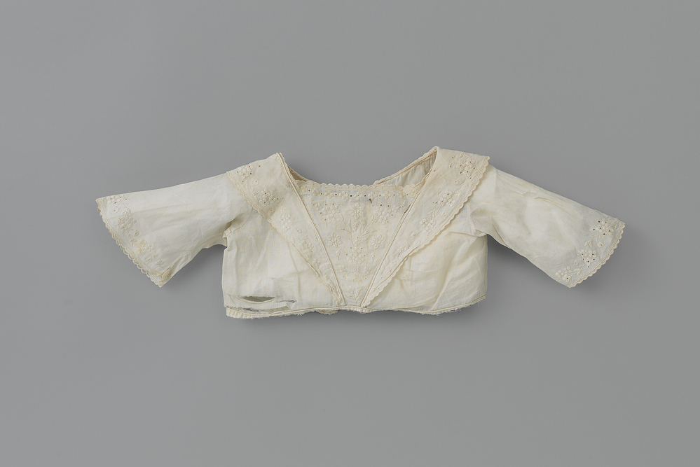 Lijfje, afgeknipt van een doopjurk.- Trefwoorden