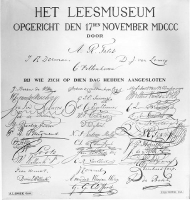 - Gedenkplaat t.g.v. de 100-ste geboortedag van A.R. Flack, oprichter van het Leesmuseum, 1800