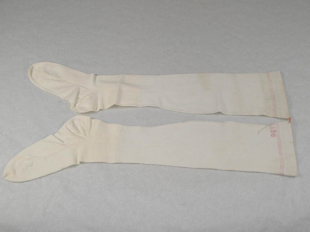 Paar machinaal gebreide katoenen kousen, met initialen.- Trefwoorden