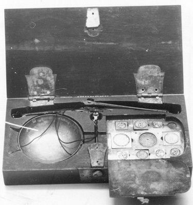 - Weegschaaltje en gewichten in doos