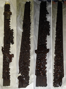 schilderijlijst met gestoken eikeloofrand, folterwerktuigen en vier familiewapens, afkomstig van het Rasphuis. De datering van de lijst is gebaseerd op de ambtsperiodes van de hieronder genoemde regenten. Links de wapens van Rudolf van Norden (1733-1739) en Willem van Collen (1731-1740); rechts de wapens van Isaac Hoogenberg (1728-1742) en Abraham ter Borch (1722-1748). De lijst behoorde bij een - thans verdwenen - regentenstuk door J.M. Quinkhard.