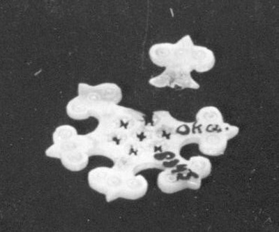 In twee losse onderdelen. De beschreven pootjes op de foto zijn verdwenen.- Trefwoorden