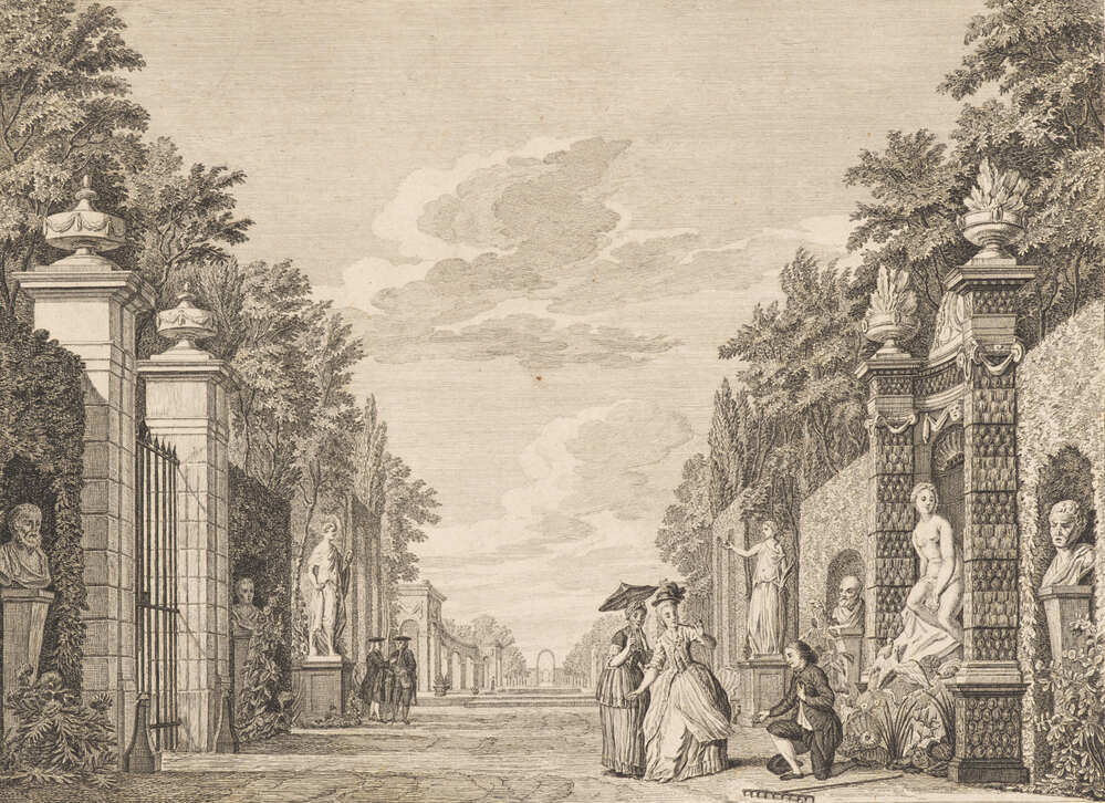- De tuin scène uit "De Hovenier door liefde" van E. van Hoeven, 1769 - 1789