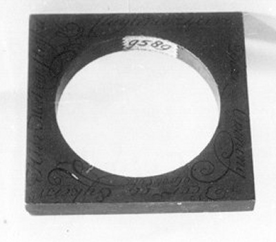 - Koperen plaatje om dikte strijk-ellen te meten, 1774