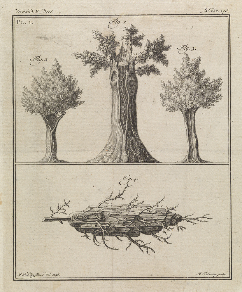 - Verschillende soorten van boomgroei (bladz. 156 uit een boek) (naar Drijfhout, J.F.), 1748 - 1768