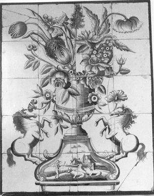 Een tegeltableau is een vlak, bestaande uit meerdere aardewerken tegels, die door een schildering één voorstelling vormen. Tegeltableaus werden vanaf de zeventiende eeuw populair, omdat ze zowel decoratief als functioneel waren. Ze boden uitkomst tegen vocht, waar huisjes langs grachten en kanalen nogal eens last van hadden, en waren gemakkelijk schoon te houden. Daarnaast zorgden de uit Italië afkomstige vormen, kleuren en motieven voor een vrolijke aanblik rond de haard of in de gang. In de periode van de Jugendstil (ca. 1900) leefde de aandacht voor tegeltableaus opnieuw op. Families en bedrijven die het zich konden veroorloven, lieten wanden, gevels en portieken versieren met tegeltableaus in Art Nouveau stijl. Ook voor jubilea en andere feestelijke gelegenheden werden soms tegeltableaus vervaardigd. Een bekende Amsterdamse plateelbakkerij in deze tijd was De Distel (1895-1925), die aan de Valckenierstraat 83-87 gevestigd was. ( Sarah Remmerts de Vries)
